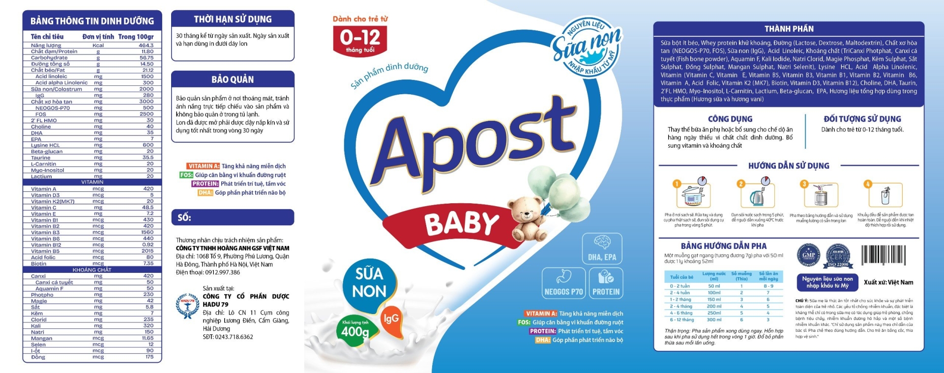 | Sữa bột ít béo, Whey protein khử khoáng, Đường (Lactose, Dextrose, Maltodextrin), Sữa non (IgG), Chất xơ hòa tan (NEOGOS-P70, FOS), Acid Linoleic, Khoáng chất (TriCanxi Photphat, Canxi cá tuyết (Fish bone powder), Aquamin F, Kali Iodide, Natri Clorid, Magie Phosphat, Kẽm Sulphat, Sắt Sulphat, Đồng Sulphat, Mangan Sulphat, Natri Selenit), Lysine HCL, Acid Alpha Linolenic, Driphorm HiDHA 50, Vitamin (Vitamin C, Vitamin E, Vitamin B5, Vitamin B3, Vitamin B1, Vitamin B2, Vitamin B6, Vitamin A, Acid Folic, Vitamin K2 (MK7), Biotin, Vitamin D3, Vitamin B12), Choline, Taurin, 2'FL HMO, Myo-Inositol, L-Carnitin, Lactium, Beta-glucan, Hương liệu tổng hợp dùng trong thực phẩm (Hương sữa và hương vani) | |||||||